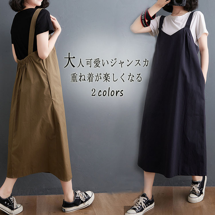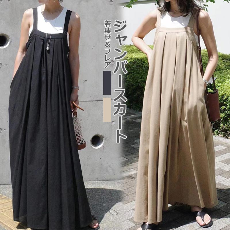 ジャンパースカート ワンピース フレアワンピース プルオーバー ジャンスカ スカート サロペット ロングワンピース サロペットスカート ジャンスカ 袖なし 大人 カジュアル シンプル