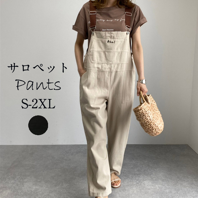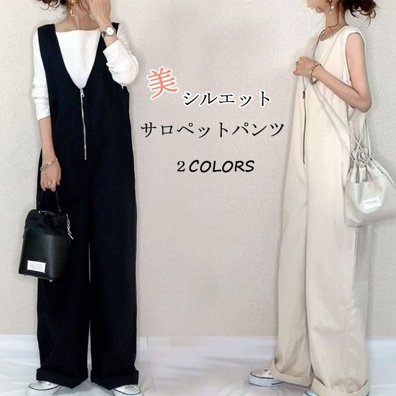 美しいビッグシルエットオーバーオールパンツ 可愛い キレイメ シンプル 着こなし 無地 ベージュ ブラック