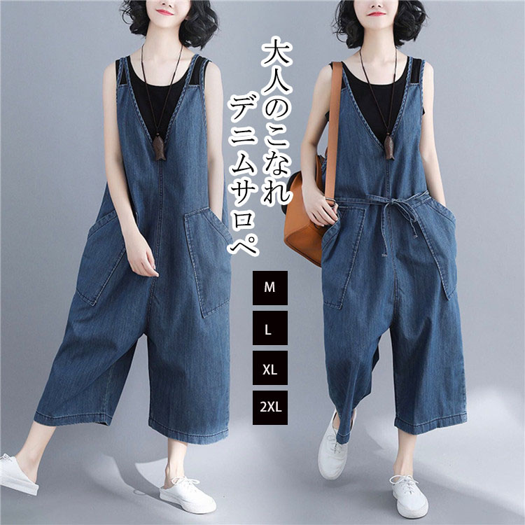 サロペット 大きいサイズ オーバーオール オールインワン デニム レディース デニムパンツ ワイドパンツ ズボン ボトムス ロング丈 カジュアル ゆったり