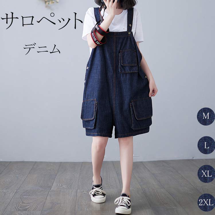 アクティブな感じになるショートサロペット サロペット 五分丈 レディース サマーパンツ 体型カバー 膝丈 半ズボン ワイドパンツ 可愛い ゆるめ ガーリー ゆるシルエット レトロ