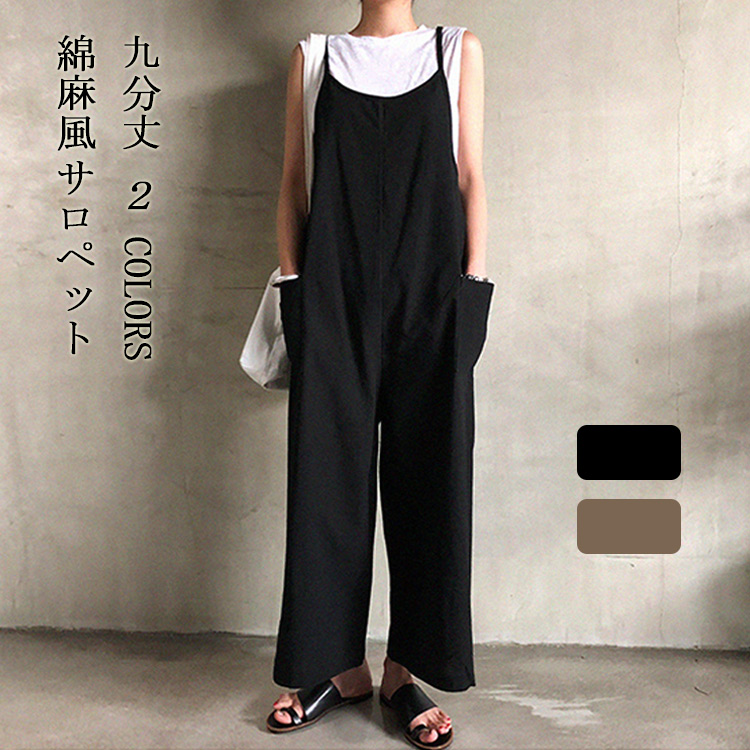 サロペット パンツ レディース 夏 秋 九分丈 綿麻風パンツ 薄手 きれいめ 通学 通勤 ゆったり コットン リネン ワイドパンツ 楽ちん ボトムス おしゃれ ガーリー
