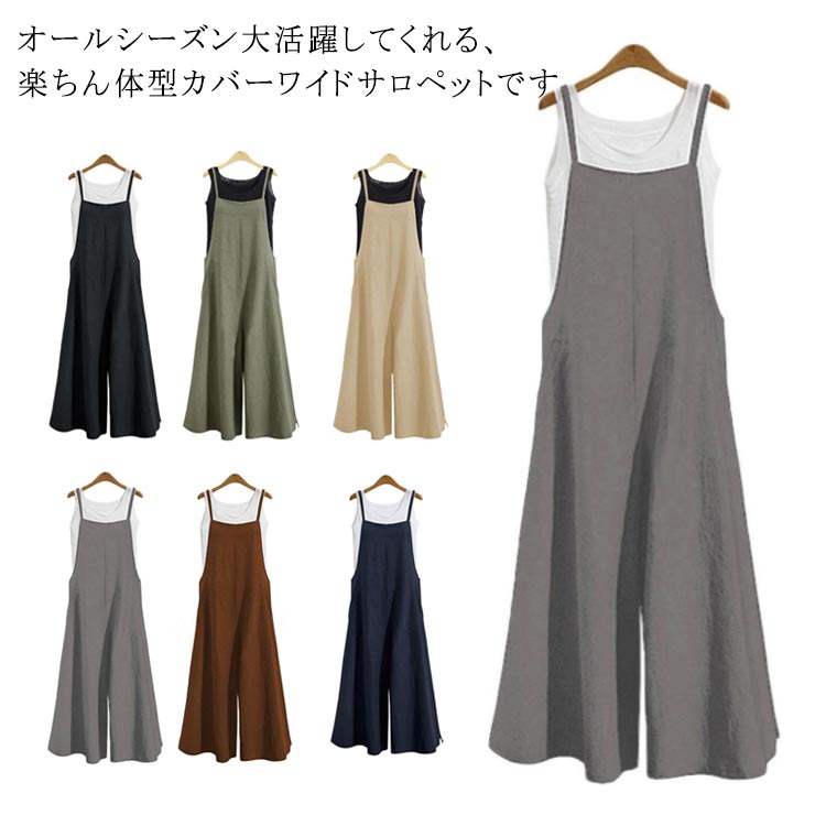 サロペット オールインワン オーバオール サロペット ワイドパンツ レデイース ガウチョパンツ 無地 春夏 春夏 パンツ