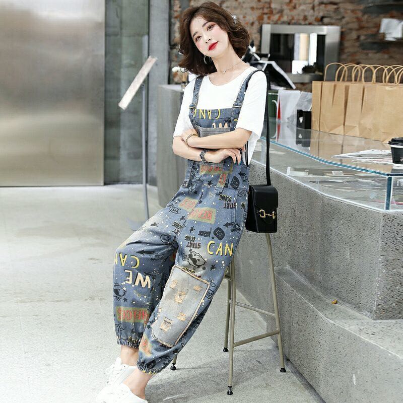 オーバーオール デニム オールインワン 九分丈 サルエルパンツ 春秋レディース アラジンパンツ おしゃれ サロペット ゆったり 楽ちん 花柄 総柄 オシャレお洒落 かわいい M L XL 2XL 20