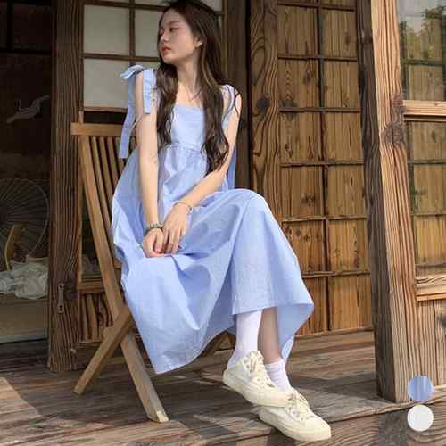 可愛い ノースリーブワンピース レディース体型カバー 無地リボンサマーワンピ ゆったり カジュアルフレアワンピ おしゃれ サロペットワンピ 夏ワンピース 韓国 Aラインワンピ春秋