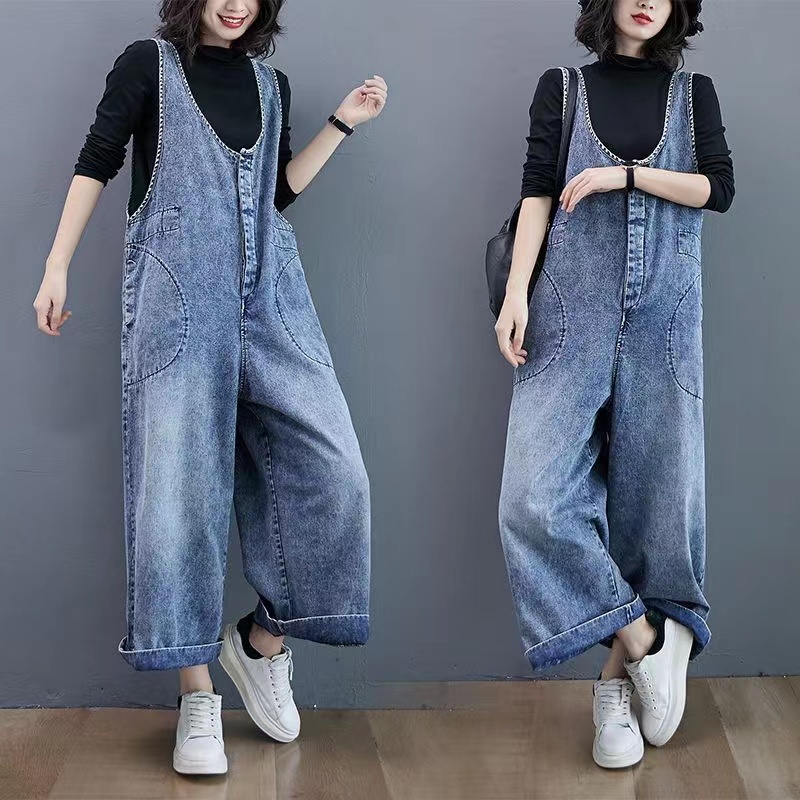 オーバーオール デニムパンツ 春秋レディース サロペット 九分丈 ゆったり 084レディースファッション オールインワン サロペット