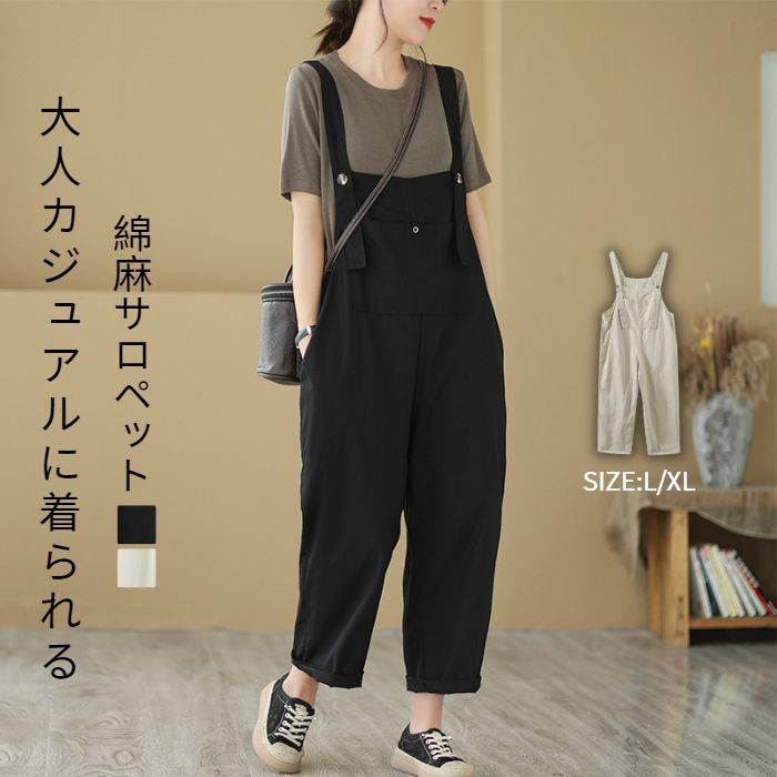 サロペット スカート 綿麻 きれいめ レディース 大人 オールインワン サロペ つなぎ ゆったり ボトムス キャミ ワンピース ノースリーブ ロング ビッグシルエット 体型カバー オーバーオール カジ