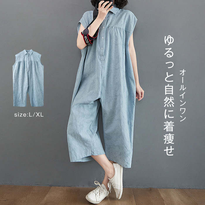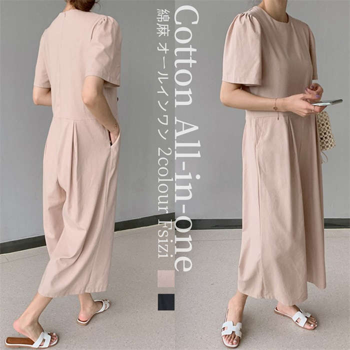 All-in-one 新作 綿麻 半袖オールインワン ♪レディースファッション オールインワン サロペット