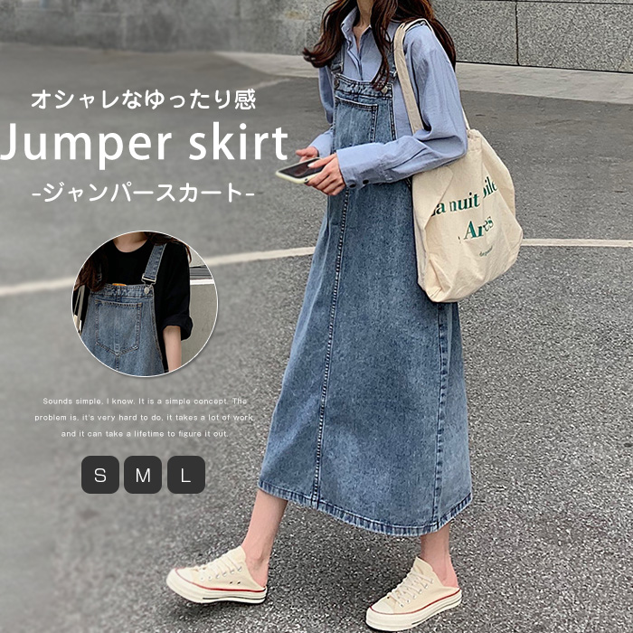 ロングで大人なジャンスカ デニムワンピース サロペットワンピース ノースリーブ 肩紐調節レディースファッション ジャンパースカート