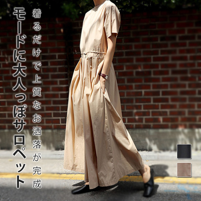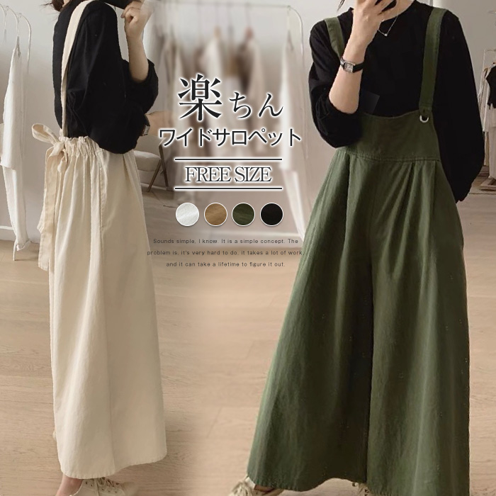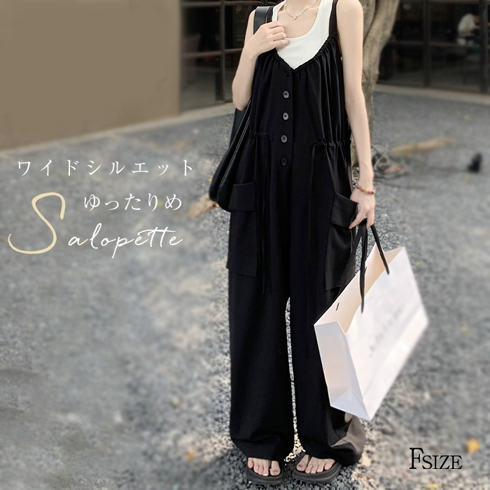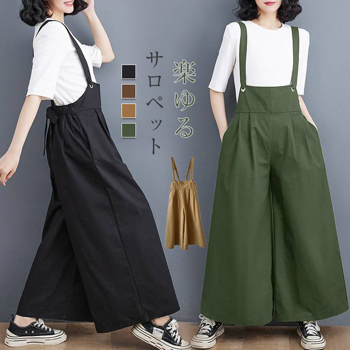 サロペット パンツ オールインワン サロペ ゆったり きれいめ オーバーオール ワイド ワイドパンツ 長ズボン シンプル ナチュラル 着痩せ 細見え