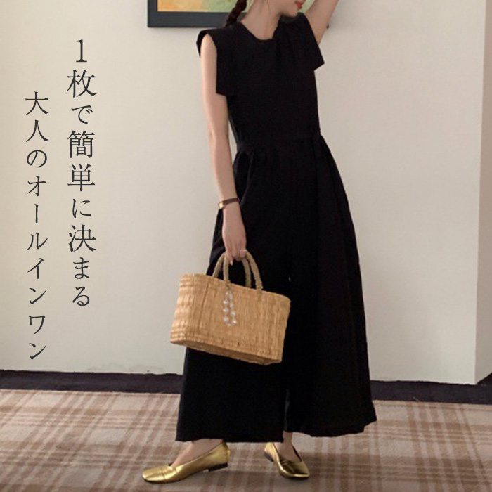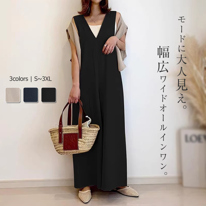 モードに大人っぽワイドサロペット オールインワン 夏 レディース パンツ おしゃれ カジュアル 体型カバー
