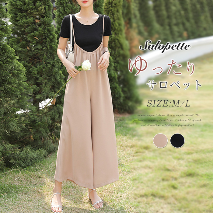 レディース夏物サロペットパンツ♪ 華奢なキャミソールストラップが抜け感をプラス レディースファッション オールインワン サロペット