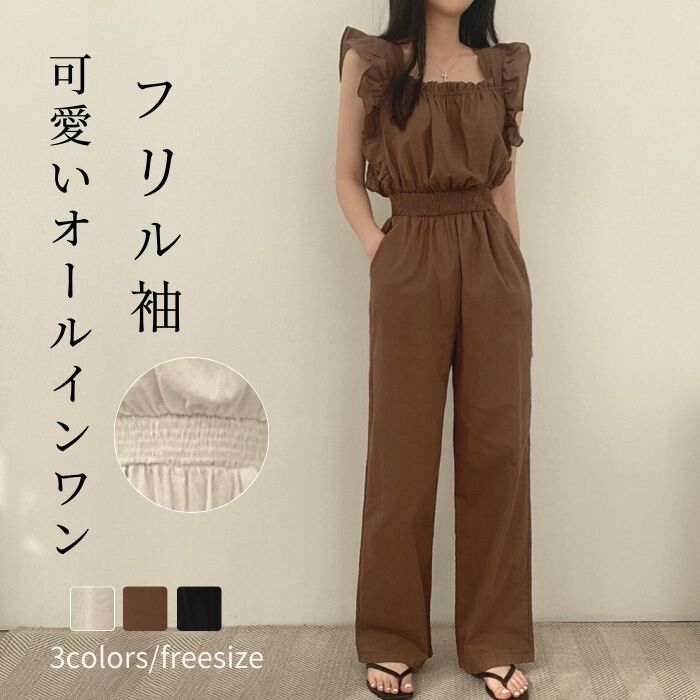 ギャザーフリルショルダーワイドオールインワン♪ 可愛らしさと上品な雰囲気も合わせ持つ、今季おすすめの一着