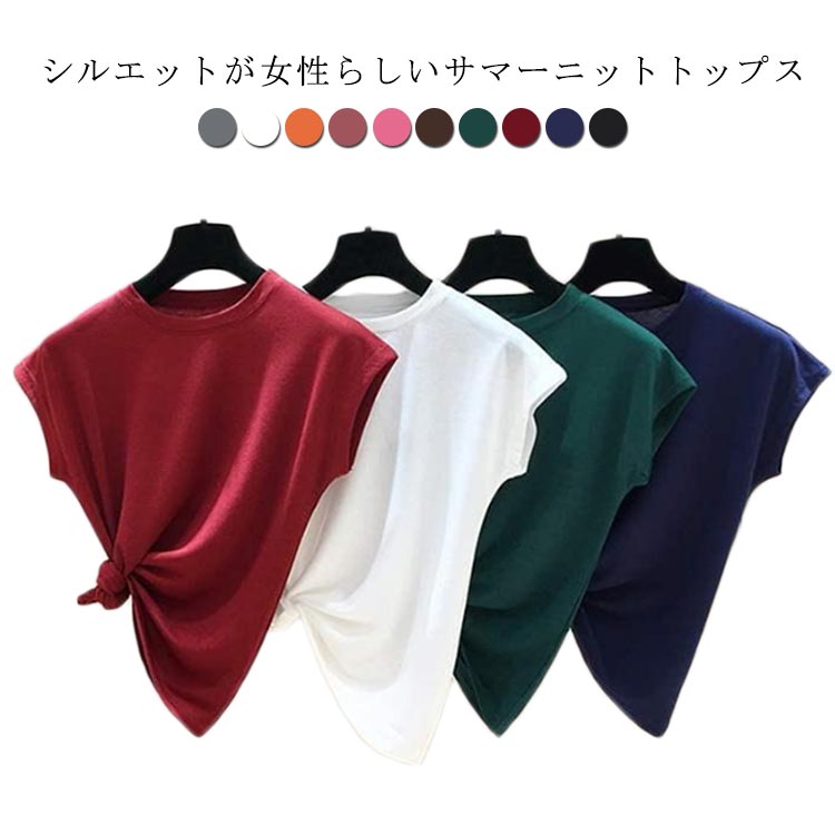 春 サマーニット フレンチスリーブ レディース tシャツ 半袖 プルーオーバー ゆったり カットソー フレンチスリーブ 無地 ニットTシャツ クルーネック 薄手 トップス キレイめ カジュアル 夏 タ