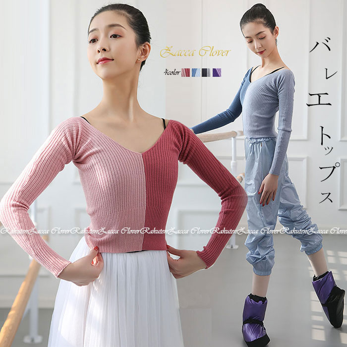 バレエ ニットトップス 大人 ジュニア レッスン 着 冷え対策 暖か バレエ ウォームアップ 長袖 エレガント Vネック リブ編み 大人バレエ バレエ用品 長袖 バレエトップス ヨガ トップス ダンス