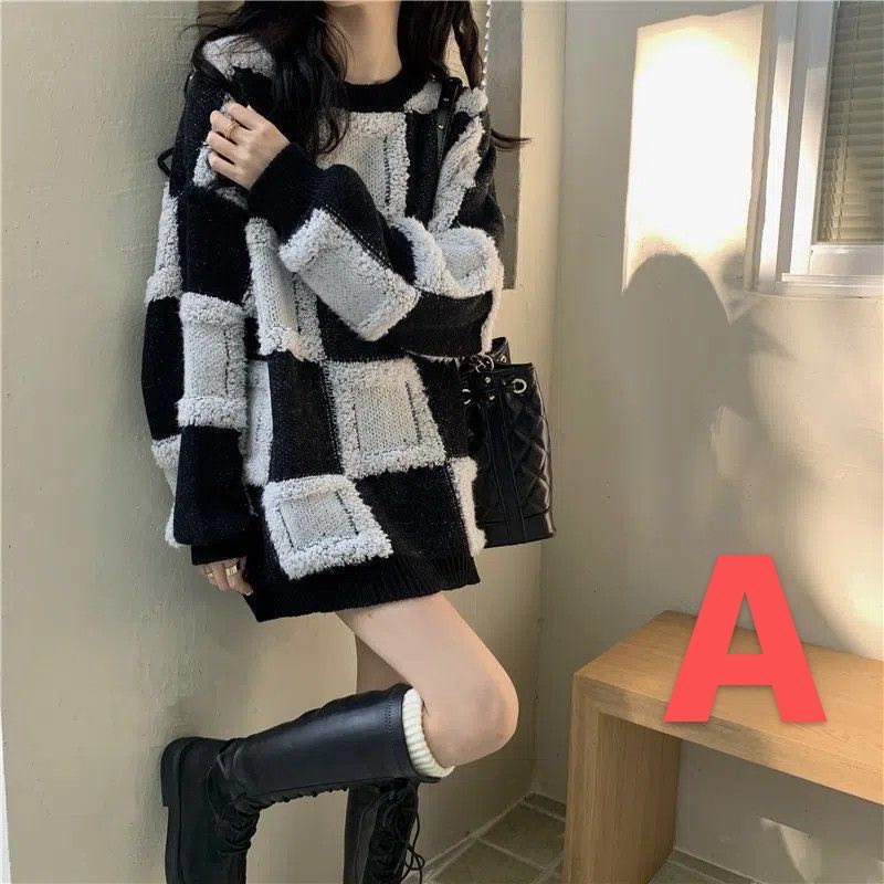 レディース セーター ニット トップス 秋冬 ゆったり 大きいサイズ チェック柄レディースファッション トップス ニット セーター セーター
