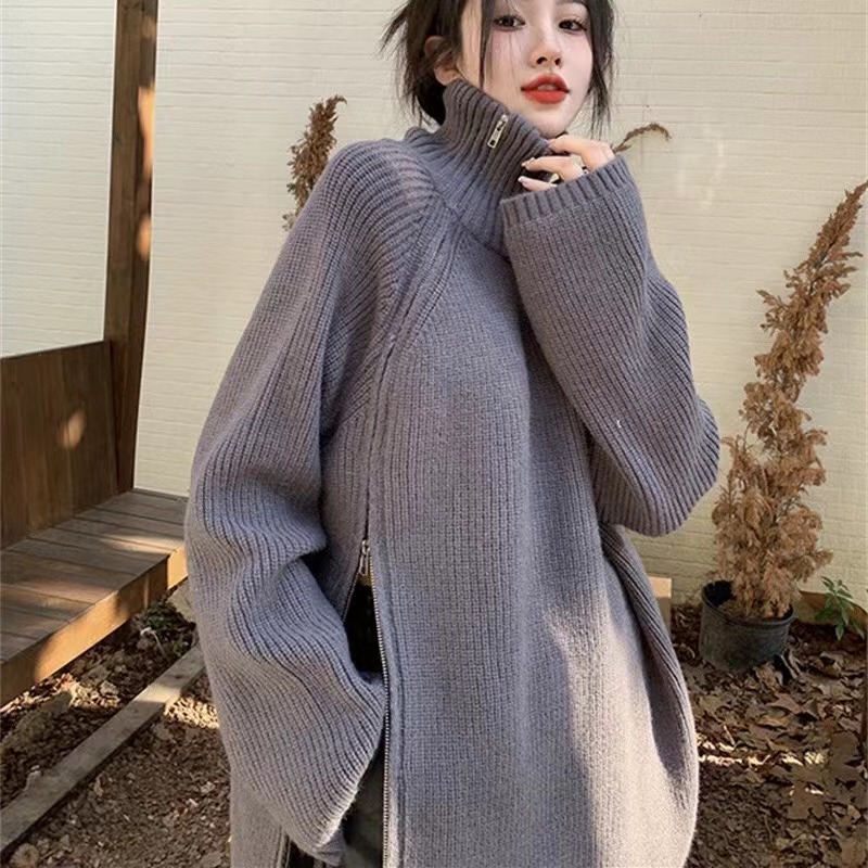 セーター ニット レディース 秋冬 トップス 厚手 ゆったり 通勤 タイトネック カジュアル 長袖 無地 グレー ブラック S M L XL 2XL SLUA379