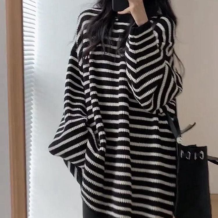 レディース トップス セーター ニット 秋冬 大きいサイズ ストライプ柄レディースファッション トップス ニット セーター セーター