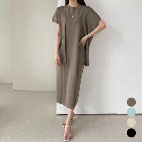 リブニットワンピース サマーニット カーディガン ショール アンサンブル 2点セット 20代 30代 オフィスカジュアル 40代 通勤服 女 きれいめワンピース 体型カバー 大人服