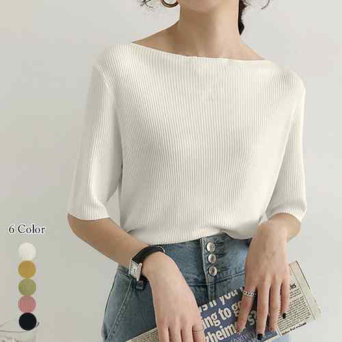 ニットトップス ボートネック ニットソー 無地 プルオーバー シンプル 韓国ファッション 薄手 リブニット 無地 ニットソー 着やせ トップス