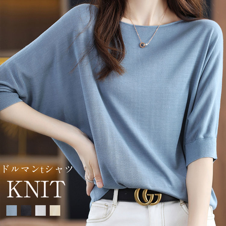 ドルマンサマーニット ドルマンニット 5分袖 カジュアル フォーマル 通勤 仕事 オフィス OL 大人可愛い ドルマンtシャツ ニットtシャツ 春夏 上品 エレガント