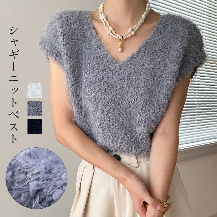トレンドのふんわりシャギーが今年らしい ニットベスト レディース 春秋 プルオーバー ニットトップス ノースリ ニット トップス 体型カバー シンプル カジュアル お洒落 キレイめ