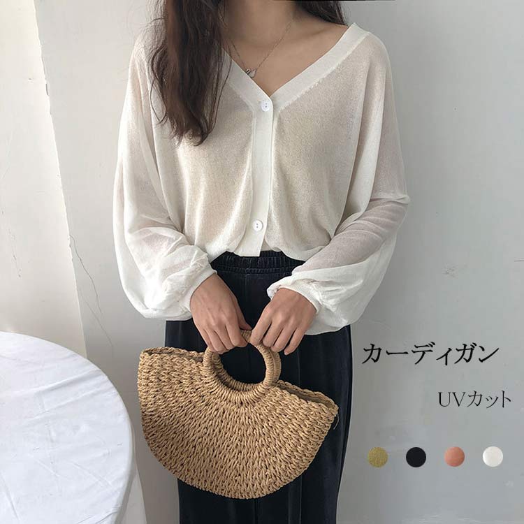 夏カーディガン 冷房対策にも♪透け感が涼しげなボレロ カーディガン サマーカーディガン 薄手ニット 羽織り ショート丈 長袖 ドルマン UV対策 きれいめ オシャレ