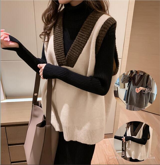 2020秋新作 ニットベスト ノースリーブニットVネックベスト 韓国版chicゆったりスリムコート 韓国ファッション 可愛い レディース ゆったりカジュアル