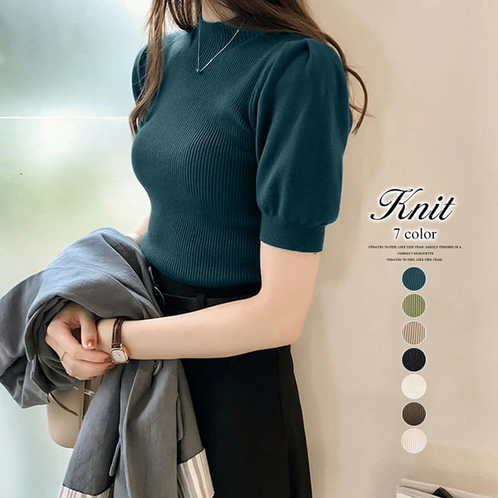韓国ファッションレディース 上品 ニット ハーフタートルネックニット セーター五分袖 インナーニット 上品 トレンド