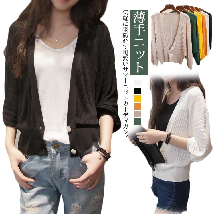 ドルマン袖 ニットカーディガン 薄手 重ね着 ライトアウター ストライプ サマーカーディガンレディースファッション トップス カーディガン ボレロ