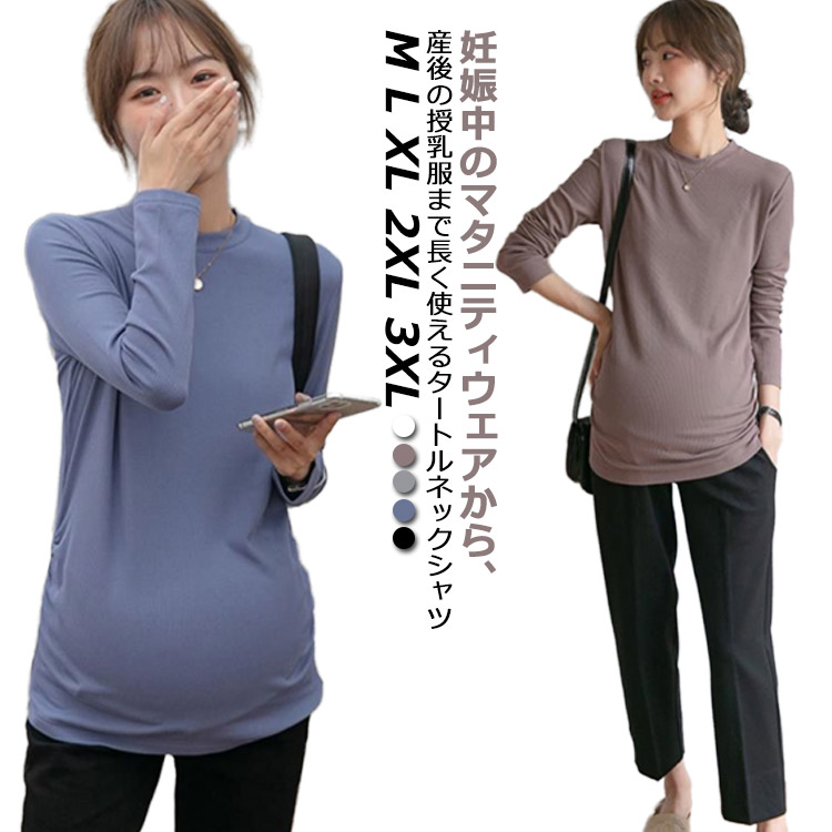 マタニティ ロンTシャツ ニットセーター カジュアル シャツ ハイネック インナー セーター トップス 授乳服 マタニティウェア ニットソー 冬 授乳 長袖 薄手 セーター タートルネック 快適 体型