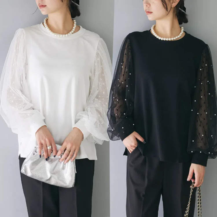 シフォンブラウス シアーブラウス ボリューム袖