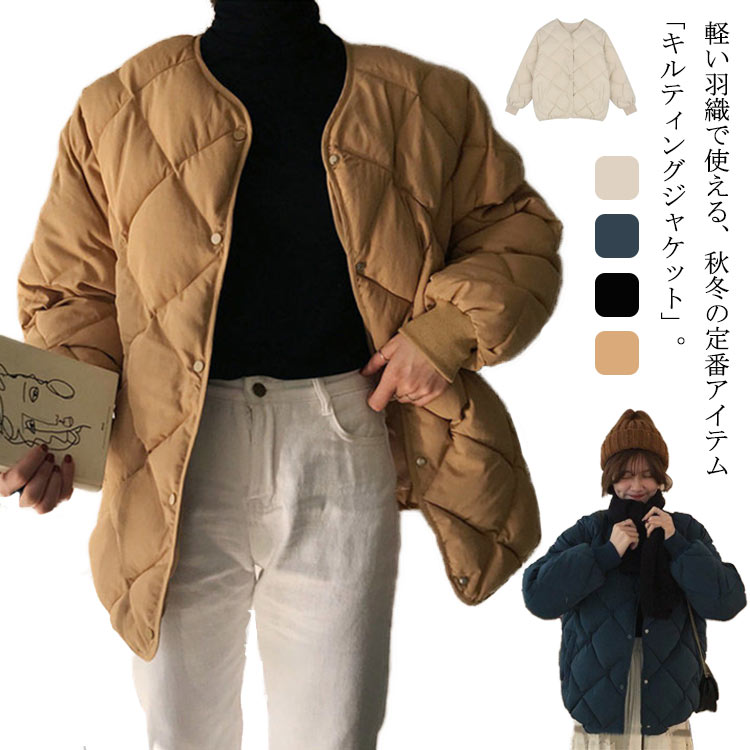中綿 キルティング コート ジャケット カジュアル 秋冬 ジャケット 防寒 暖かい 厚手 トップス 普段使い ノーカラー