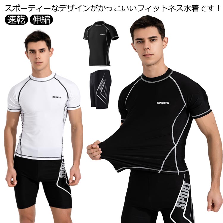 メンズ フィットネス水着 上下セット 競泳水着 セパレートメンズファッション 水着
