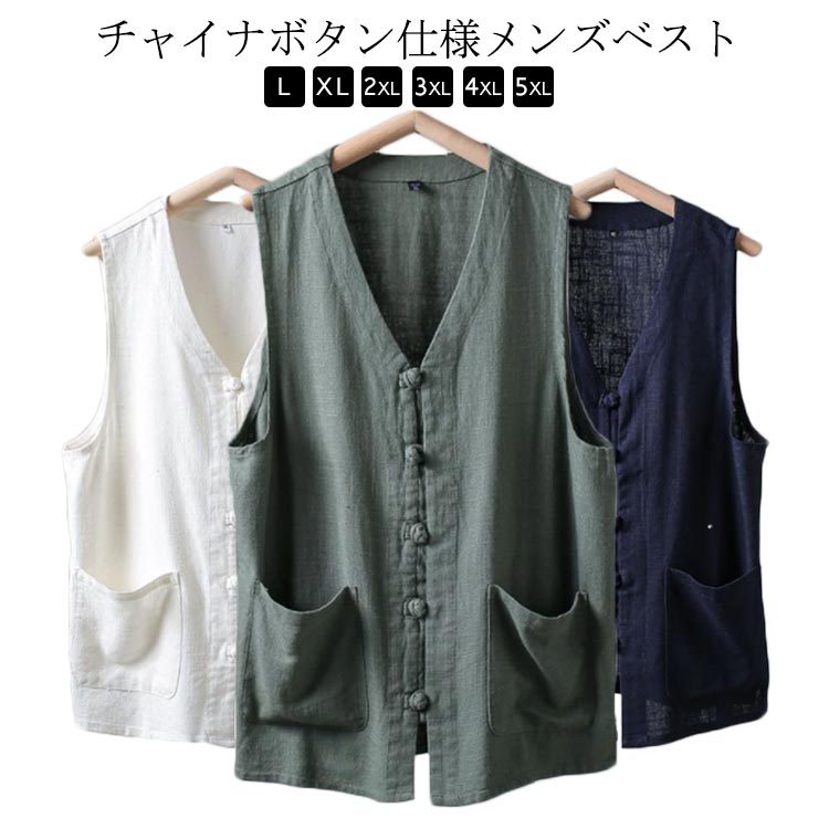 ノースリーブ メンズ ジレ ビジネス カジュアル ベスト 夏ベスト チャイナ服 前開き 涼しい 通勤 トップス サマーベスト チャイナベスト チャイナボタン リネンシャツ 薄手 快適 通気性 吸汗速