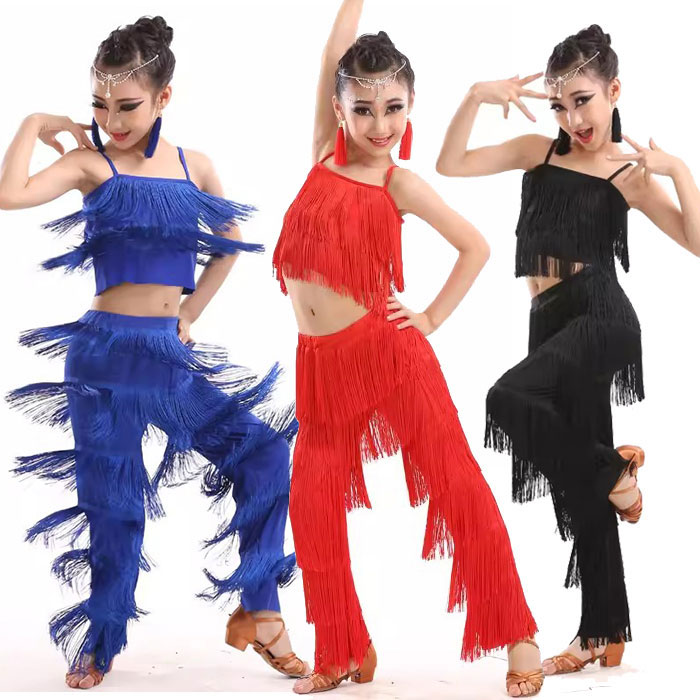ダンス衣装 子供 キッズ ラテンダンス トップス パンツのセット 上下セット フリンジ おしゃれ 女の子 ダンス衣装 舞台衣装ステージ衣装 イベント 団体ダンス 110 120 130 140 1