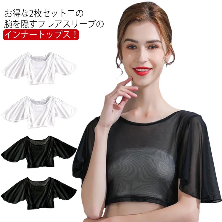 レディース 肌着 ノースリーブ用付け袖 プルオーバー インナー クルーネック 二の腕隠し 黒 白レディースファッション トップス その他